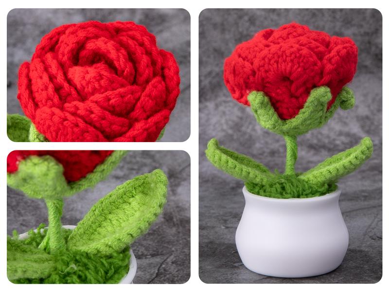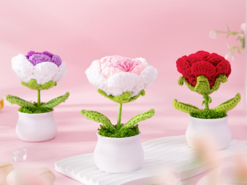 - 1 x Pink/red knitted flowers