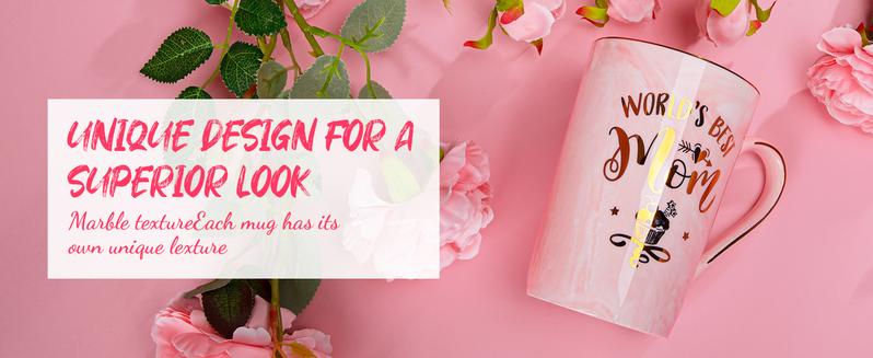 - The pink cup with the gold pattern is a perfect match.